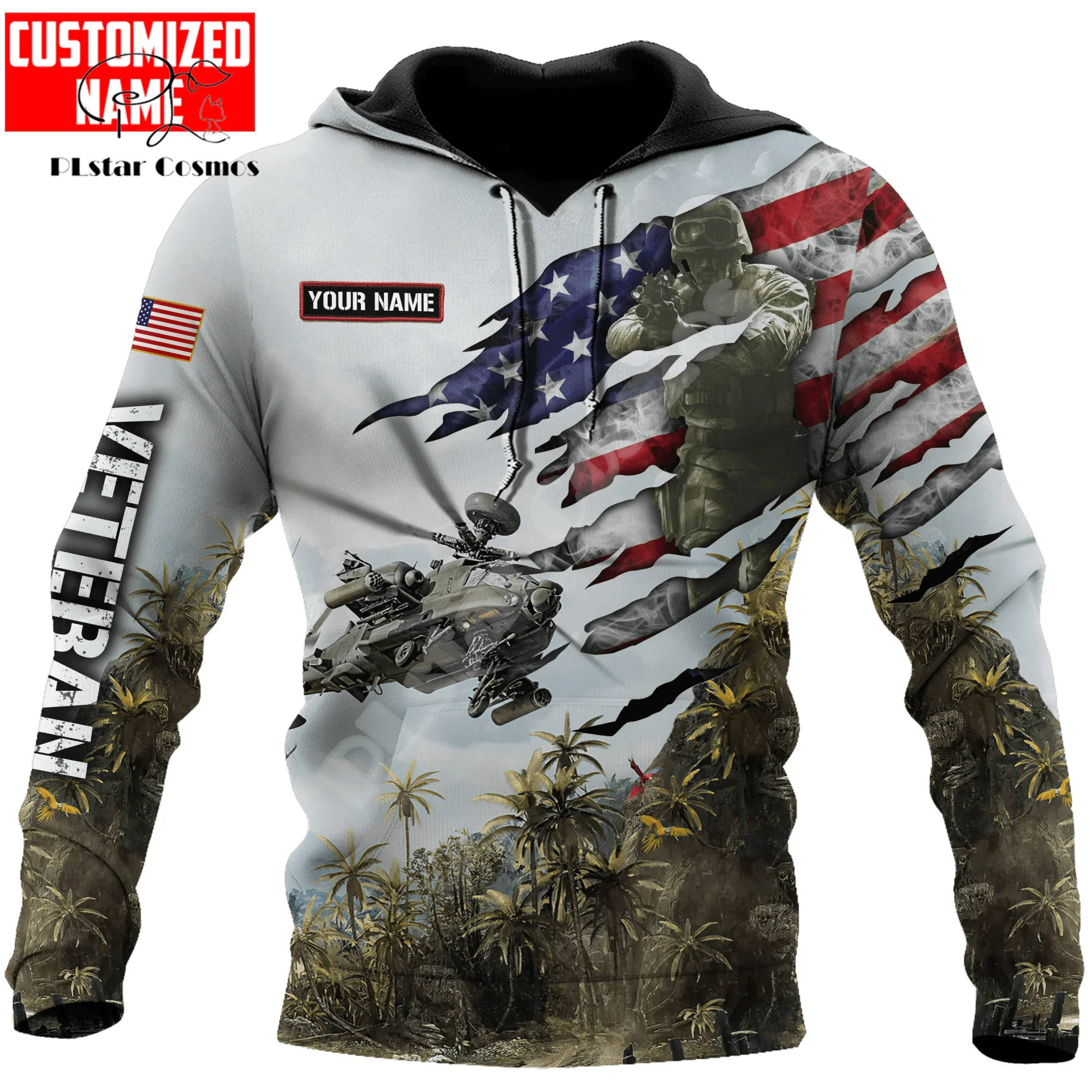 Custom Name Army Military Veteran Soldier Camo Eagle Long Sleeves Tracksuit 3DPrint Pullover Streetwear Casual Jacket Hoodies